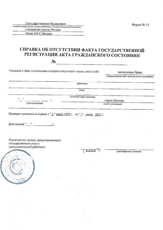 Оформление справки формы № 15 (отсутствие факта гос. регистрации акта гражданского состояния) требует внимательного подхода к следующим этапам: