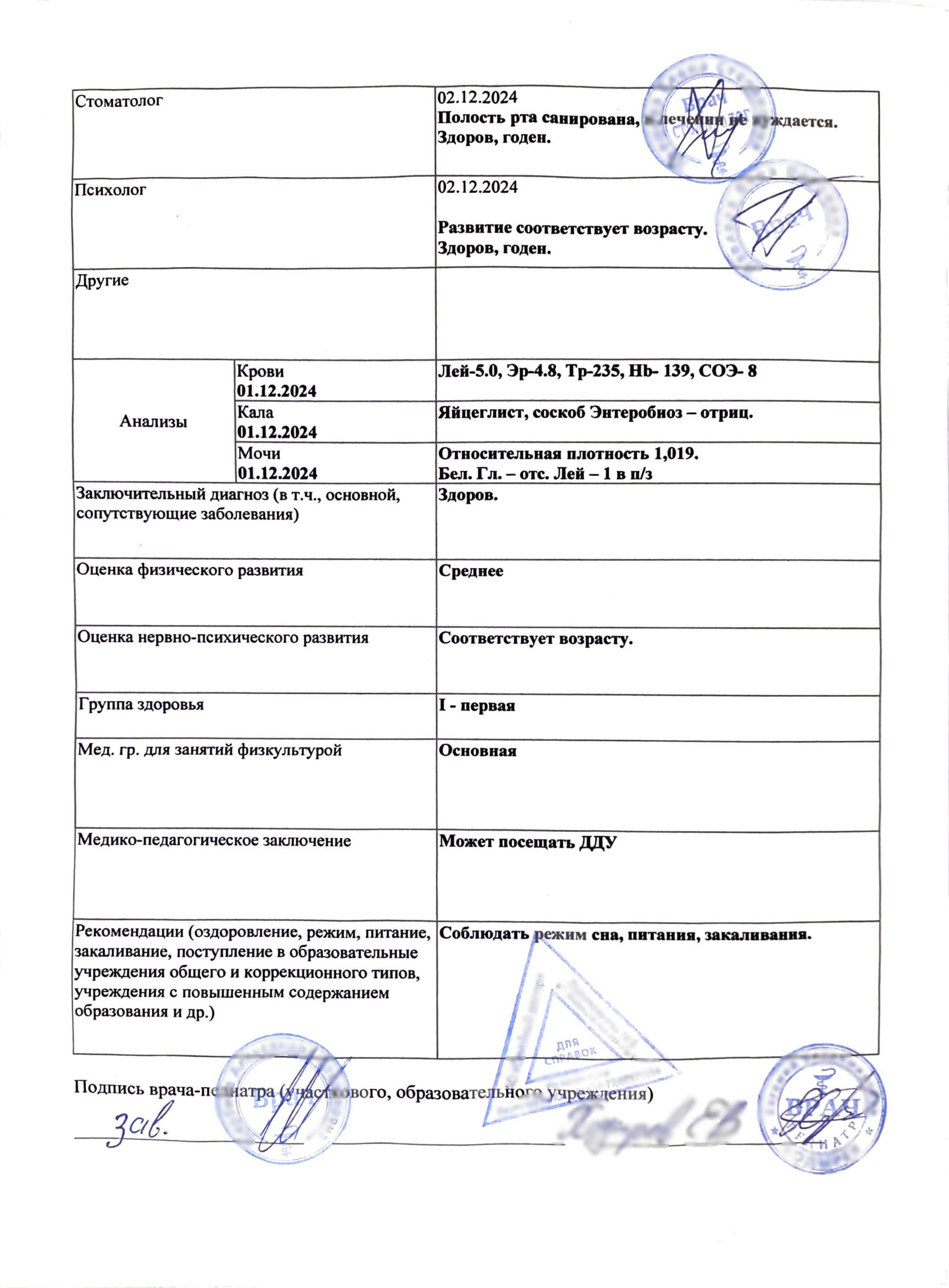 Справка дает возможность родителям и сотрудникам дошкольного учреждения иметь полную картину о здоровье ребенка. При необходимости малыша могут отправить в специализированное учреждение или дать рекомендации родителям и воспитателям.