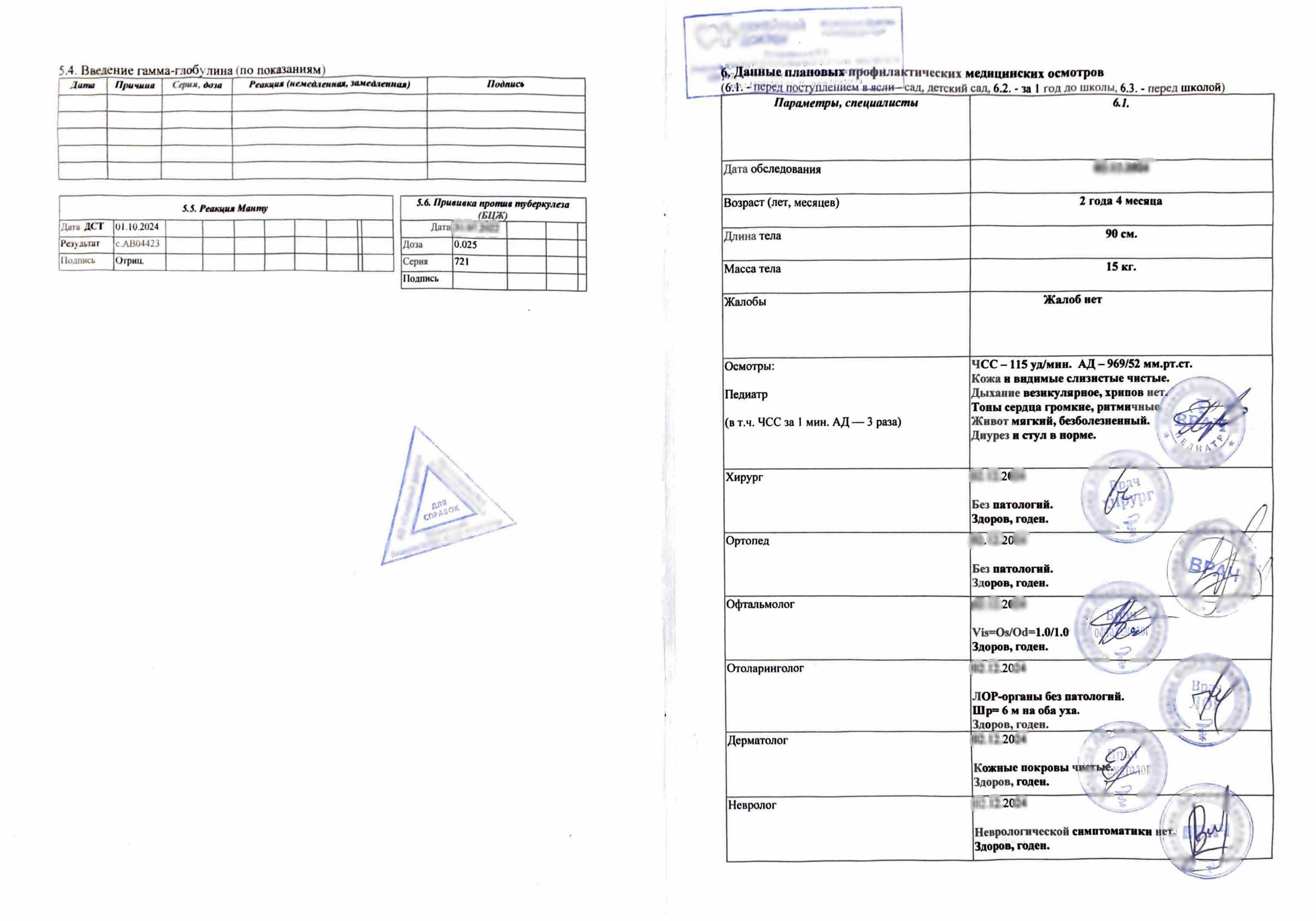 В форме 026 должны быть заключения таких врачей как хирург, невролог, дерматолог, ЛОР и другие. Если ребенок наблюдается у узкопрофильных специалистов, они также должны сделать отметку в медицинской карте. Стоит учесть, что если в карте отсутствуют сведения о вакцинациях, то могут возникнуть проблемы с принятием в дошкольное заведение и тогда ее лучше купить в нашем медицинском центре.